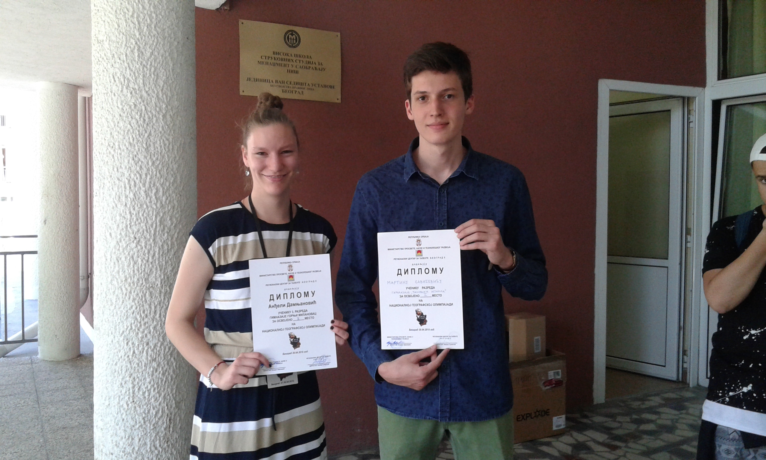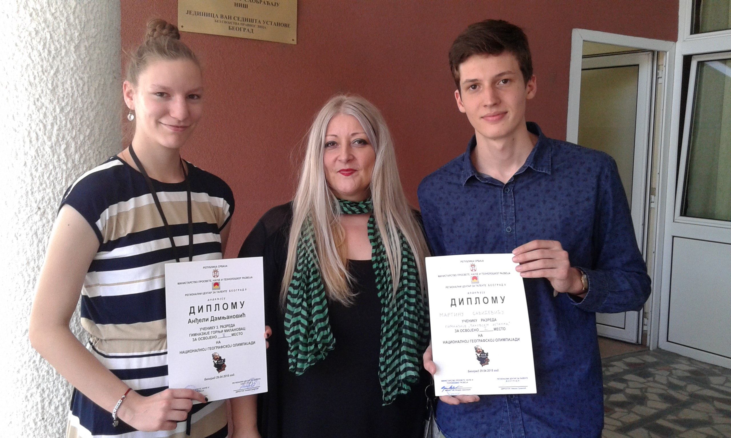 Ученик Мартин Савићевић је освојио прво место и пласман на Балканску географску олимпијаду која се ове године одржава у Румунији у граду Јаши, а ученици Анђела Дамњановић и Лука Таловић треће место.