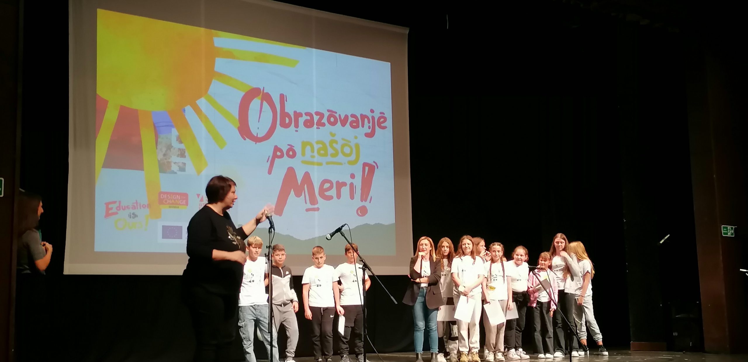 У недељу 29. септембра, ученица четвртог разреда, двојезичног одељења, Теодора Станкић и наставник Филип Трнавац, учествовали су на Свечаности у оквиру пројекта „Education is Ours!“ Образовање по нашој мери. Више од 200 ученица и ученика из целе Србије, окупило се како би представили своје пројекте које су осмислили и реализовали уз подршку посвећених менторки и ментора из 10 школа. Млади су нас импресионирали својим креативним идејама, а оно што нас је посебно одушевило је атмосфера сарадње и ентузијазма. Поред сјајних презентација пројекта, учеснице пројекта су одржале интерактивне радионице. Цео програм у потпуности су самостално водили ученици и ученице Основне школе „Жарко Зрењанин“ из Банатског Новог Села, који су показали изузетну вештину у организацији и вођењу догађаја. Била је то одлична прилика за размену идеја, забаву и учење кроз игру. Ова иницијатива је део пројекта „Education is Ours!“ и финансирана је уз подршку програма Еразмус+. Међу ученицима који су представили своје пројекте, била је и ученица Гимназије „Таковски устанак“, Теодора Станкић која је са својим другарима из школе радила на пројекту „Колики сам човек“ на часовима изборног предмета уметност и дизајн. Теодора је одговарала на питања водитеља програма и публике. Добила је и прелепе комплименте од колегиница из других школа. Пројекат ученика Гимназије „Таковски устанак“ добила је похвалу жирија као најхуманији пројекат. Пројекат који су ученици радили је део пројекта према „Design for Change“ методологији а има за циљ оснаживање младих. Свечаност се завршила избором тима Основних школа „Јован Ристић“ и „Раде Драинац“ из Борче, менторки Емине Милошевић и Јасмине Васић који су радили пројекат, Едукативно-мотивациони полигон „Изабери прави пут“ који ће представљати Србију на Глобалном скупу у Дубаију. Свечаност је показала колико је важно младима пружити прилику да буду део решења, да уче кроз игру и преузимају одговорност за промене у својим заједницама. На крају, искористили смо време да посетимо и Цептеров музеј у Кнез Михајловој и погледали значајну колекцију српске модерне уметности.